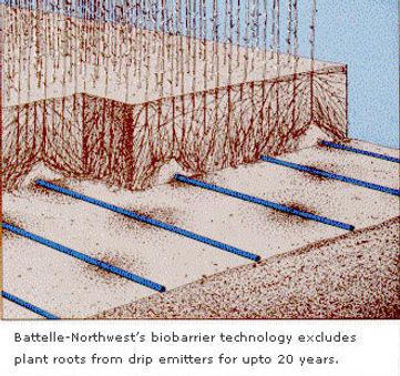 Battelle-Northwest's Biobarrier technology excludes plant roots from drip emitters for up to 20 years.