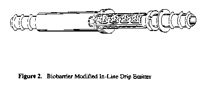 The purposes of these research efforts were to test and evaluate new product lines incorporating Biobarrier Technology. Several aspects of "In-Line Drip Emitter" configuration and performance were addressed, these included: